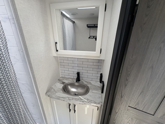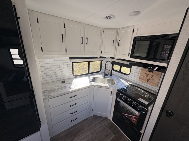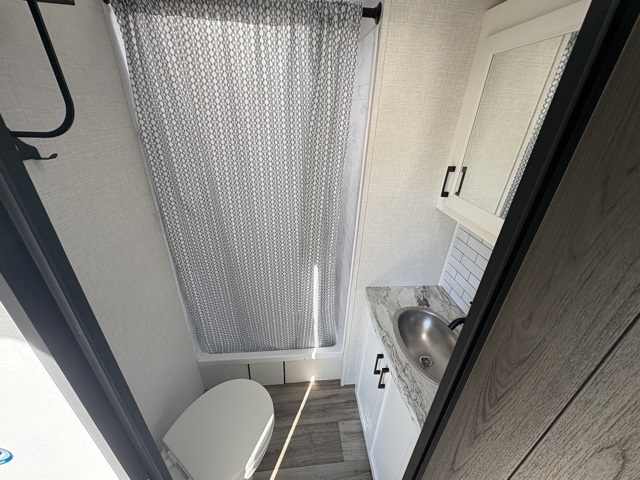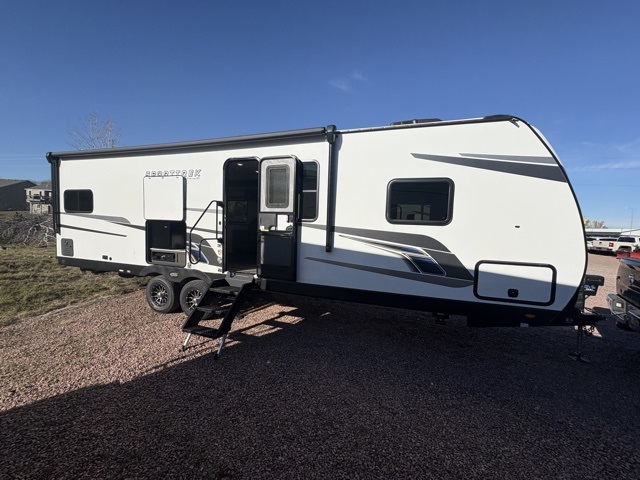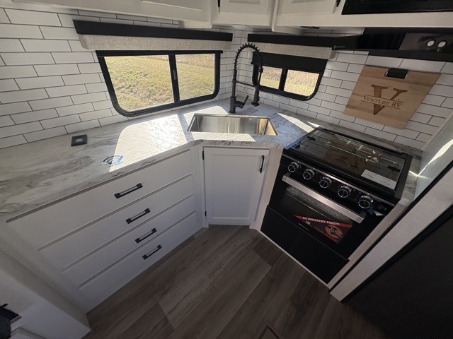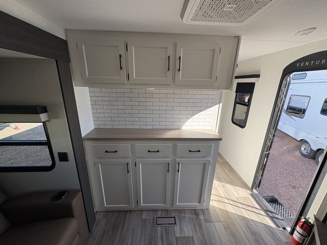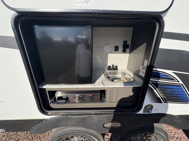 Every Venture RV SportTrek lightweight travel trailer is constructed to offer peace of mind and the comforts of home! Their purposeful residential kitchens are packed with handy features like a Furrion oven and three burner cooktop, a large stainless steel sink with a cover and dish drying rack, plus a 12V refrigerator. You will find plenty of storage throughout, including Safe-Tek hidden storage with a charging center and StorMore nightstands on either side of the bed behind the full-length closets. And the magnetic slam-latch baggage doors and spacious pass-through storage area will hold your outdoor gear in place. They even come with a hot and cold exterior shower and SporTrek's Weather Shield which includes a forced air heated and enclosed underbelly, high output A/C ducting, and more features that will let you extend your camping season. You will also love the new residential upgraded furniture, Serta memory foam mattress, barn style passage doors, and many more comforts!
