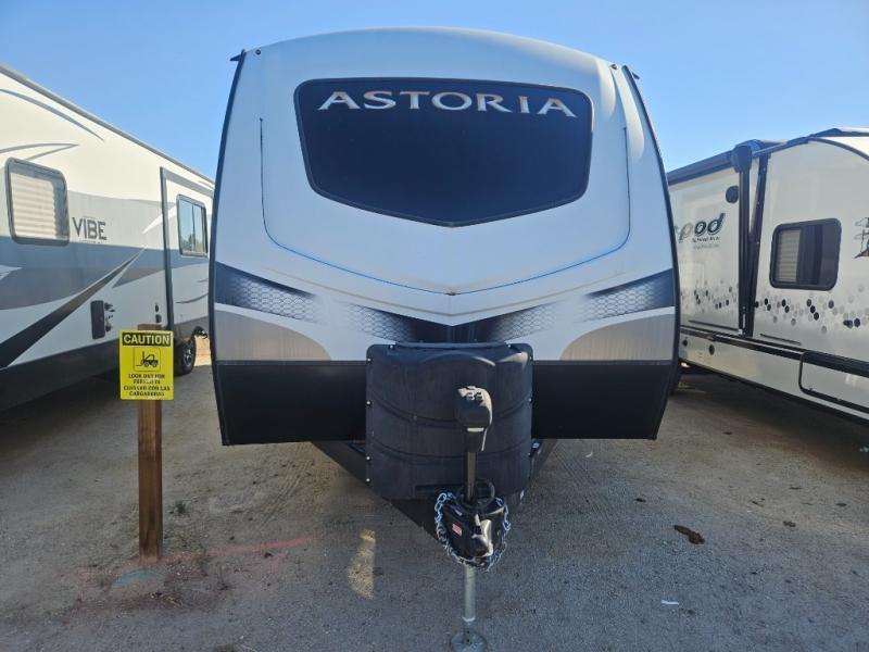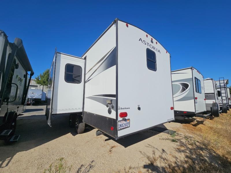Each one of these Dutchmen RV Astoria fifth wheels and travel trailers offer highly visible, value-driven standard features and a sturdy construction with a fiberglass exterior! Dark-tinted safety glass windows offer privacy and a sleek design. You can store your outdoor gear in the pass-through storage areas and the slam latch baggage doors on the fifth wheels offer even more security while you travel. Their modern interior décor includes acrylic backsplash and stainless steel appliances which will be easy to clean. HyperDeck flooring will also be easy to clean, as well as hold up through each and every adventure. Don't waste anymore time, come find your perfect model today!
